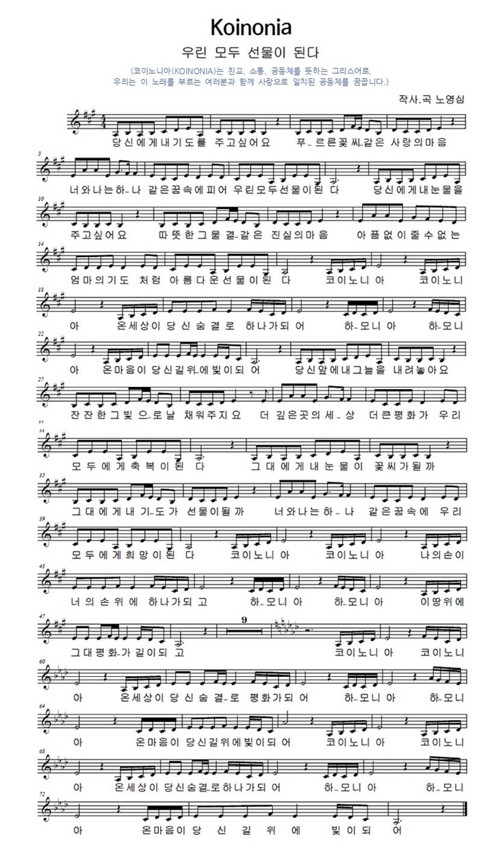 프란치스코 교황님과 함께하는 신앙생활 코이노니아 (우리 모두 선물이 된다) 노래 및 악보