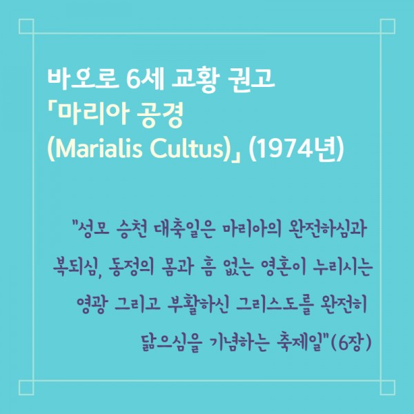 바오로 6세 교황님은 1974년 발표한 교황 권고 「마리아 공경(Marialis Cultus)」에서