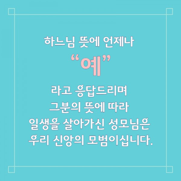 하느님 뜻에 언제나 “예”라고 응답드리며 그분의 뜻에 따라 일생을 살아가신 성모님은 우리의 신앙의 모범이십니다.