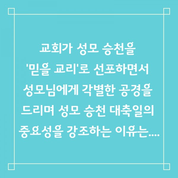 성모승천대축일 교리 3. 성모승천대축일이 왜 중요한가요?