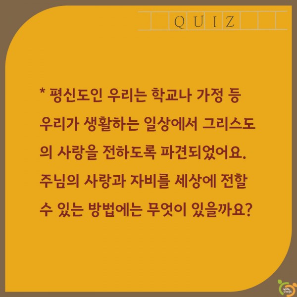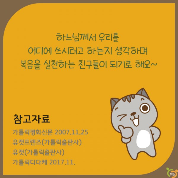 전례 시기별 교리 평신도 주일 (연중 제32주일) 페이지 정보 작성자 관리자 댓글 0건 조회 1,570회 작성일 20-11-05 17:22 본문 [2020년 11월 8일] 평신도 주일 [이 게시물은 관리자님에 의해 2022-01-27 15:35:09 교리자료에서 이동 됨] 댓글목록 댓글목록 등록된 댓글이 없습니다. 목록 이전글세계 가난한 이의 날 (연중 제33주일) 20.11.12 다음글손바닥 교리 : 묵주기도성월 - 종합 퀴즈 20.10.21