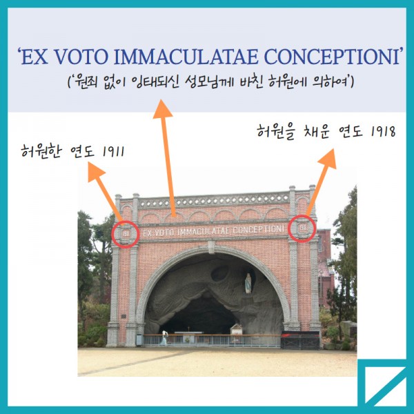 성모님께서 주교관과 신학교를 건립하고 주교좌성당을 증축하도록 도와주시면 루르드의 성모 동굴과 닮은 성모 동굴을 지어 바치겠다는 기도를 드렸습니다.