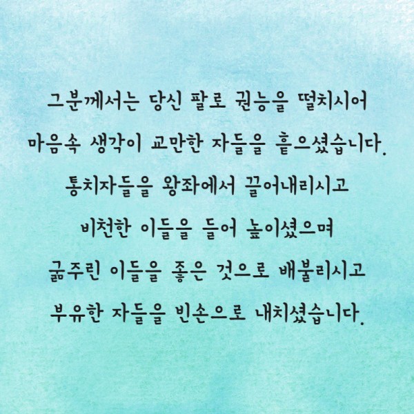 그분께서는 당신 팔로 권능을 떨치시어 마음속 생각이 교만한 자들을 흩으셨습니다.