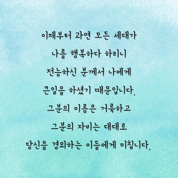 이제부터 과연 모든 세대가 나를 행복하다 하리니