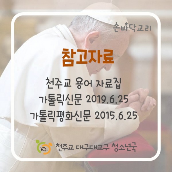 청소년부 공지사항/공문 무지개 새하늘 새땅 미사 웹툰 갤러리 교리교사 교리교사 등록 교리자료 프로그램 자료 청소년 사목 자료실 학부모 공지사항 부모 양성 프로젝트 교육 교육 및 신청 청청에듀(온라인강의시스템) 청청센터 모임방 사용 신청 패밀리 사이트 (재)대구가톨릭청소년회 청년부 대학생부
